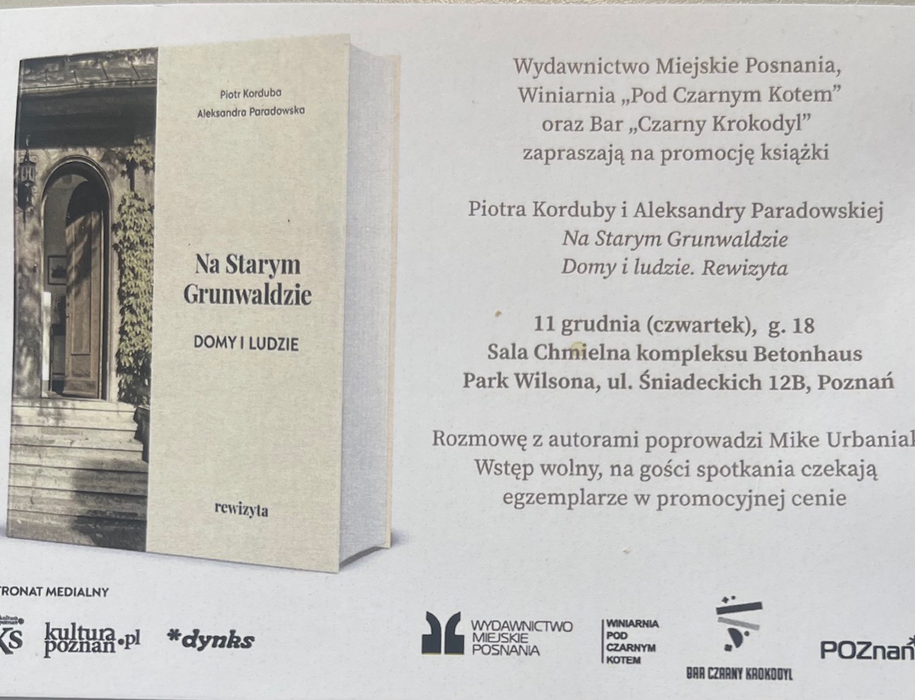 Szczegóły zapowiadanego spotkania, na które zapraszają: Wydawnictwo Miejskie Posnania, Winiarnia „Pod Czarnym Kotem” oraz Bar „Czarny Krokodyl” – zob. poniżej:
